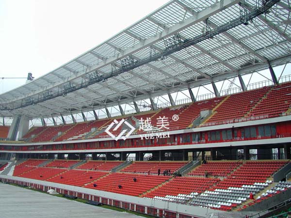 越美牌PC雙色陽光板是中空板的一種特殊產品,該產品外觀特殊,分為上下兩種顏色,室內重新營造另外一種色調氛圍